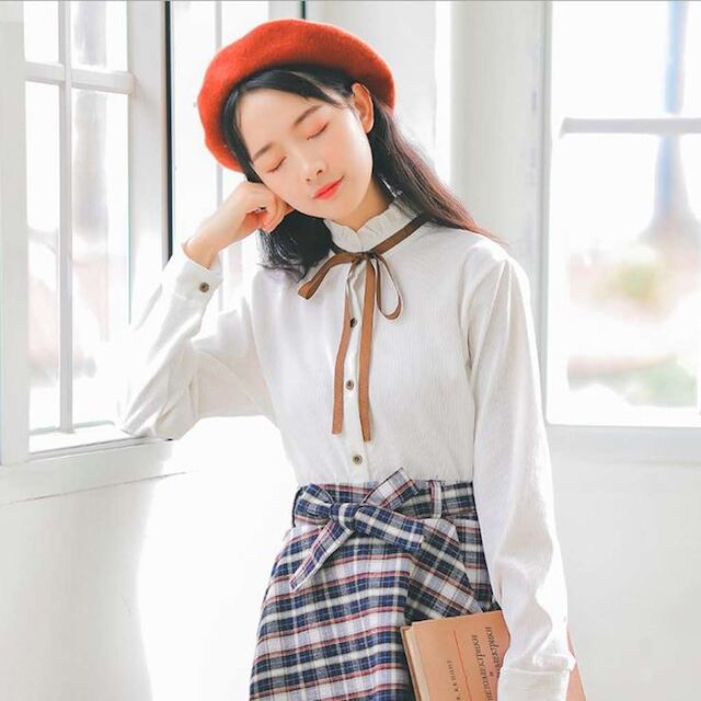 チェック柄のスカートと合わせれば簡単にスクールコーデに。